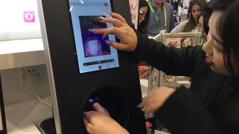 一位參觀2018CES展的女性觀眾嘗試了這項(xiàng)新的美甲技術(shù)。
